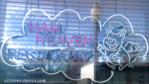 Ham Heaven, in Ferndale. Out of business, now. But boy, did the pigs ever love being slaughtered and eaten at Ham Heaven.