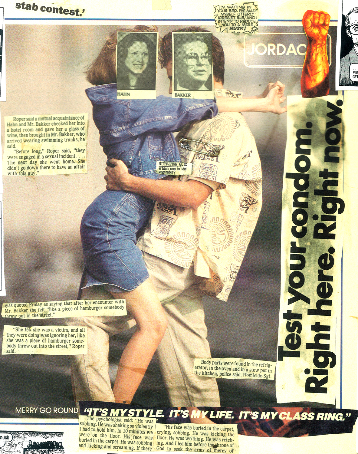 The collage format, later to be further explored in his brilliant strip “Suspect Device,” was already kicking into high gear. Click on the below for a larger insightful look into the Jim Bakker Scandal: