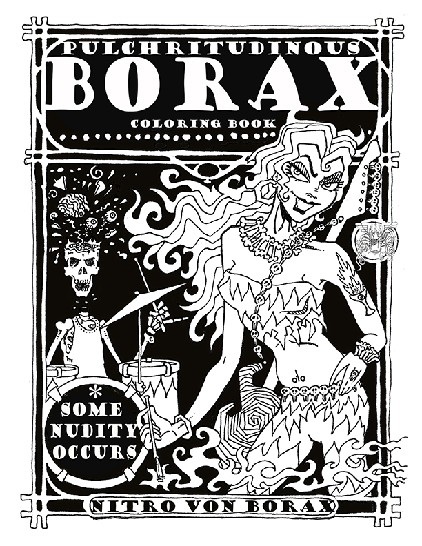 OK fine, have THE PULCHRITUDINOUS BORAX COLORING BOOK, and I quote: “Coloring fun ensues when iconic archetypes of feminine pulchritude offer some solace to the fevered brain of tortured artist and noted debauchee Nitro von Borax. These black & white images, stolen by ninja archivists from the secret compartment of a credenza at Castle Borax, are a humble homage to the women that raised Nitro von Borax: Emma Peel, Dejah Thoris & Dian the Beautiful, Red Sonja, Modesty Blaise, Brenda Starr, Betty & Veronica, and, of course, Sheena, Queen of the Jungle.”